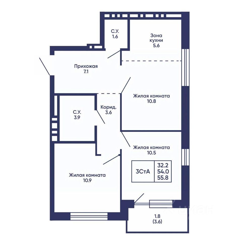 Продаётся 3-комнатная квартира в строящемся доме (Дом 3), срок сдачи: I-кв. 2028, общей площадью 55.8 кв.м., на 3 этаже. Жилой квартал ''Сподвижники'' от компании Vira.