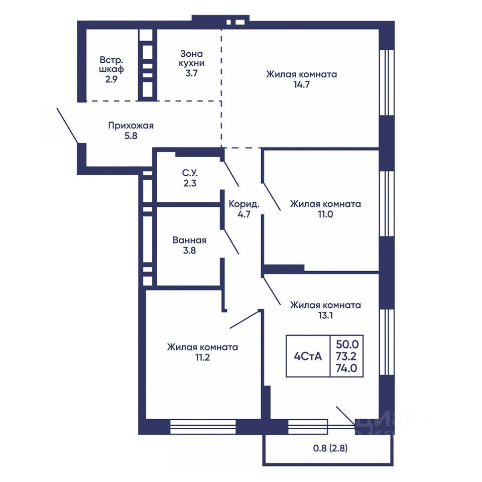 Продаётся 4-комнатная квартира в строящемся доме (Дом 2), срок сдачи: I-кв. 2028, общей площадью 74 кв.м., на 9 этаже. Жилой квартал ''Сподвижники'' от компании Vira.