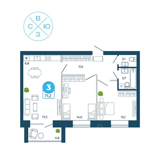 Продаётся 3-комнатная квартира в строящемся доме (1 этап), срок сдачи: IV-кв. 2027, общей площадью 71.2 кв.м., на 3 этаже. Новый жилой комплекс ''Атмосфера'' от Специализированного застройщика ''Атмосфера'' расположен по адресу: Новосибирская обл., г. Обь, ул. Муромская.