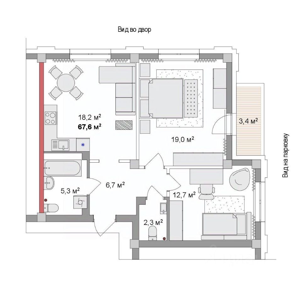Общая площадь67,17 м2