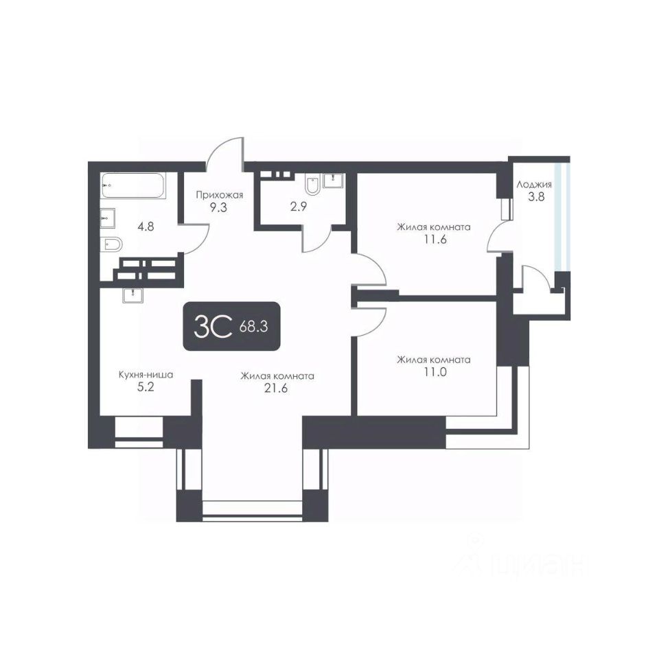 Общая площадь68,3 м2