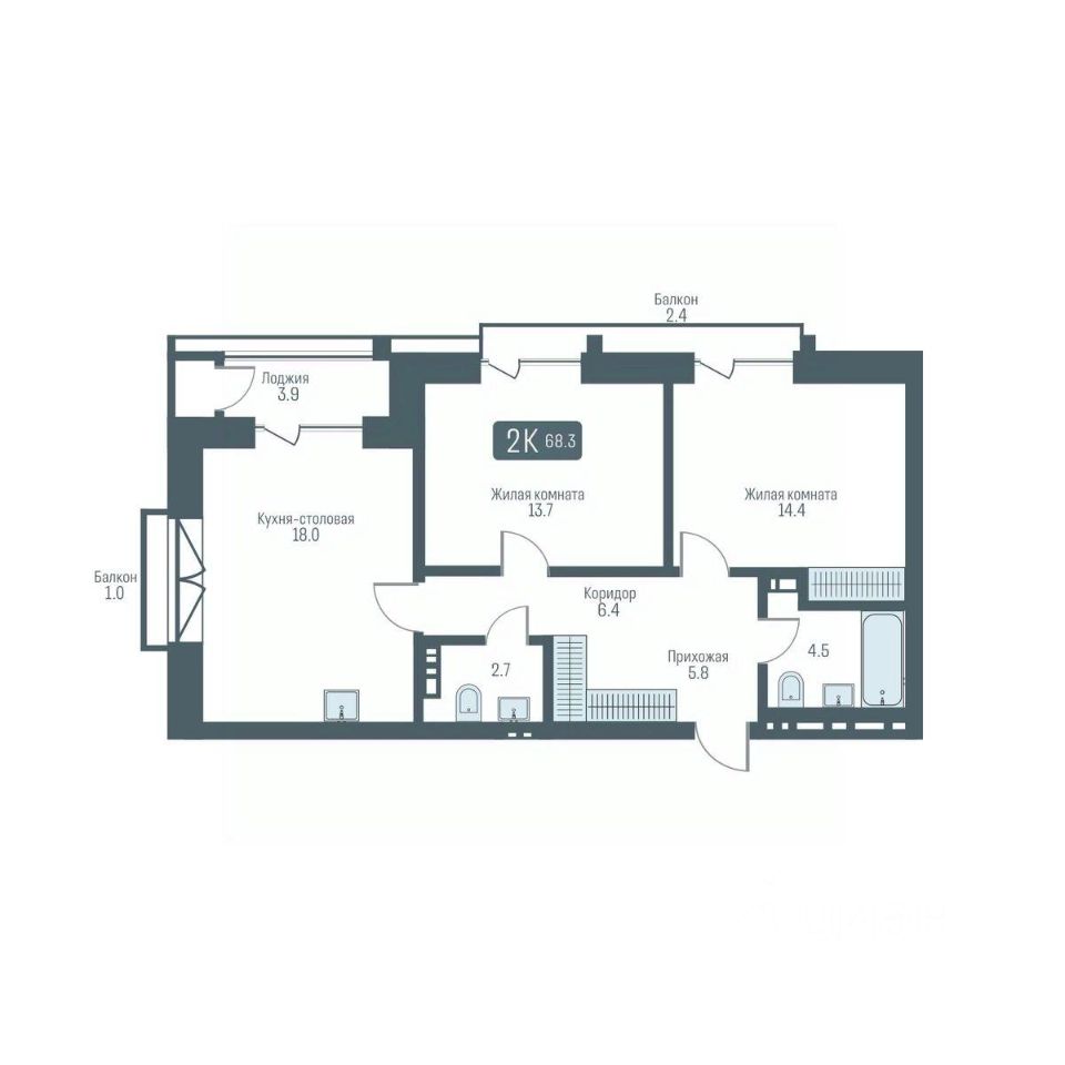 Общая площадь68,3 м2