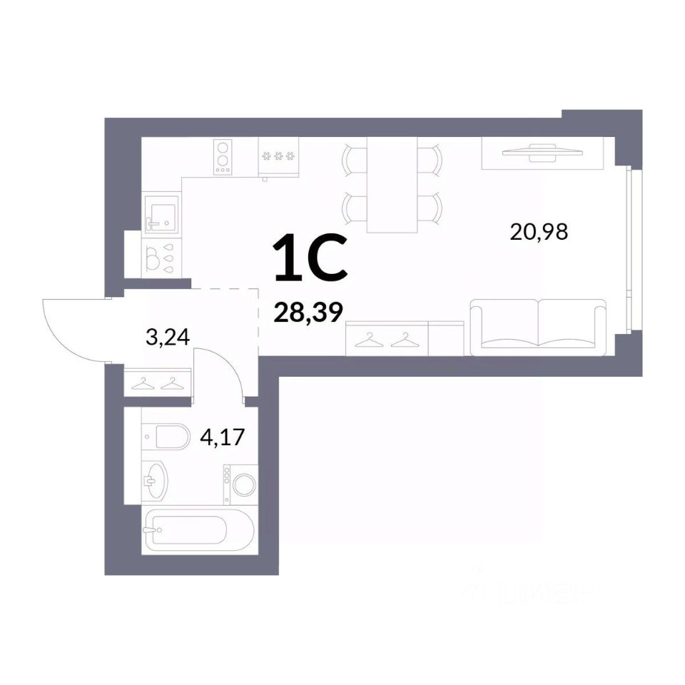 Общая площадь28,39 м2