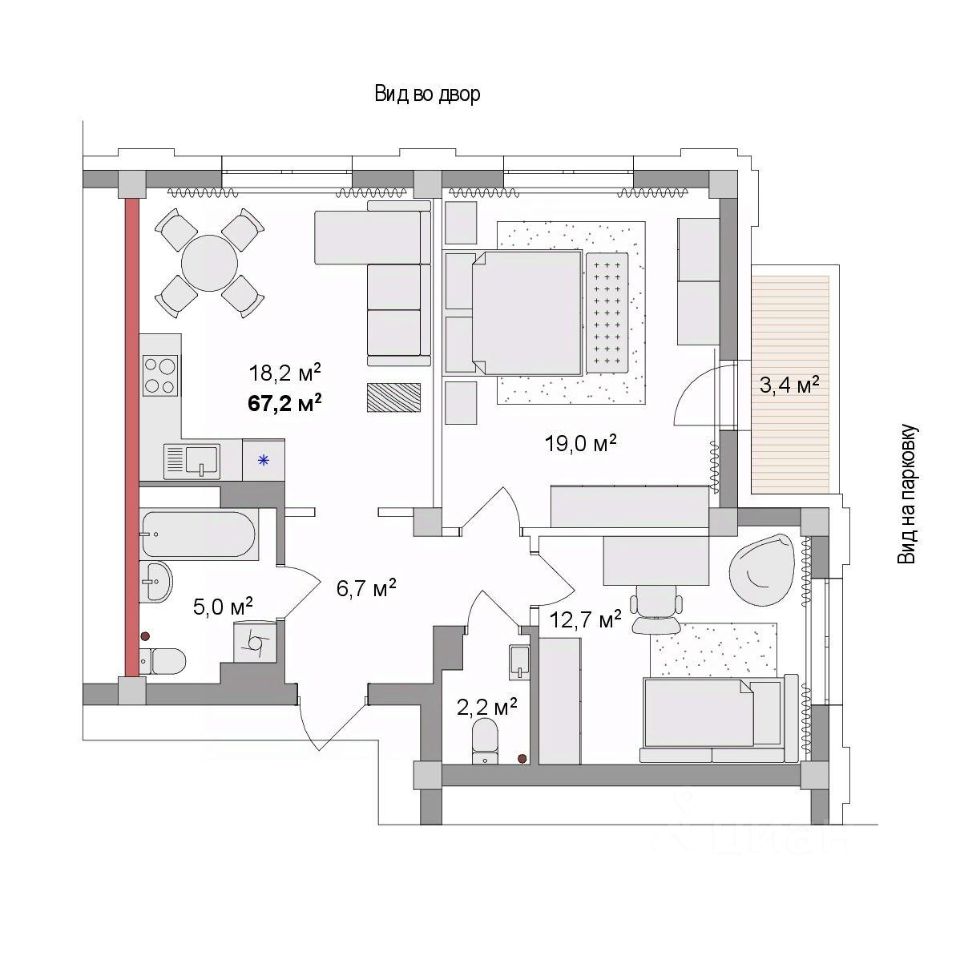 Общая площадь67,17 м2