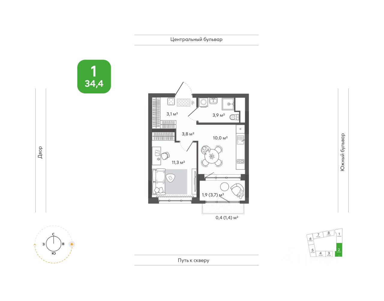 Жилая комната легко адаптируется под ваш стиль жизни. Здесь предусмотрено место для удобной системы хранения, а правильные пропорции комнаты позволяют создать комфортную атмосферу для отдыха и работы.