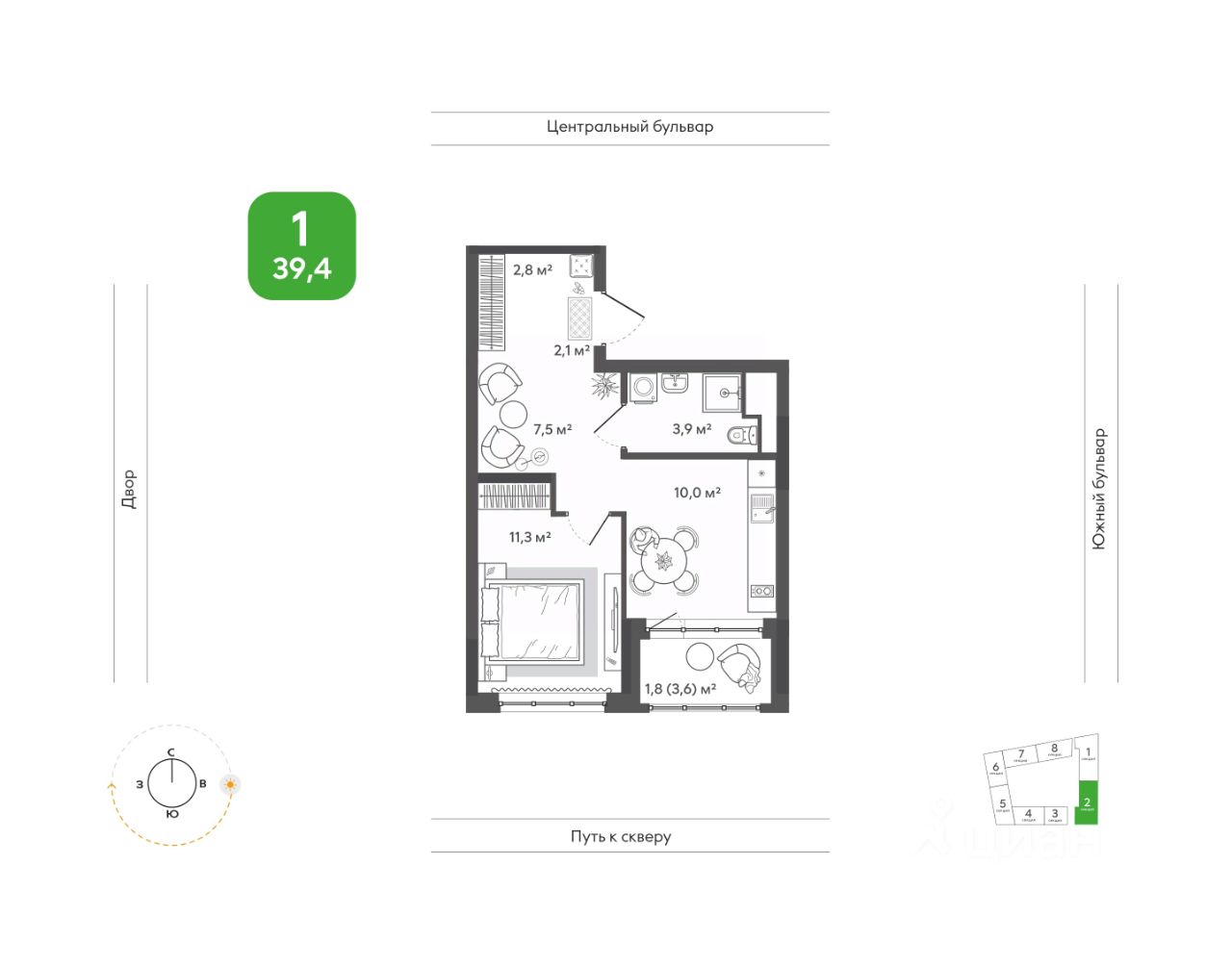 Продаётся 1-комнатная квартира в строящемся доме (Дом 1), срок сдачи: I-кв. 2028, общей площадью 39.4 кв.м., на 6 этаже. Жить в ритме природы, не теряя динамики города. В ''Сибирии'' свежий воздух встречается с динамикой города, создавая привилегию выбора: завтрак в кофейне на первом этаже дома или заряжающая пробежка в парке, культурный вечер в центре искусств или теплый семейный ужин на террасе. ''Сибирия'' становится частью нового городского кластера - с образовательной средой полного цикла, культурно-спортивным центром, медицинской инфраструктурой, современным центром искусств. Новые школы, детские сады, колледж с кампусом, новая поликлиника - все это делает жизнь комфортной и полноценной.