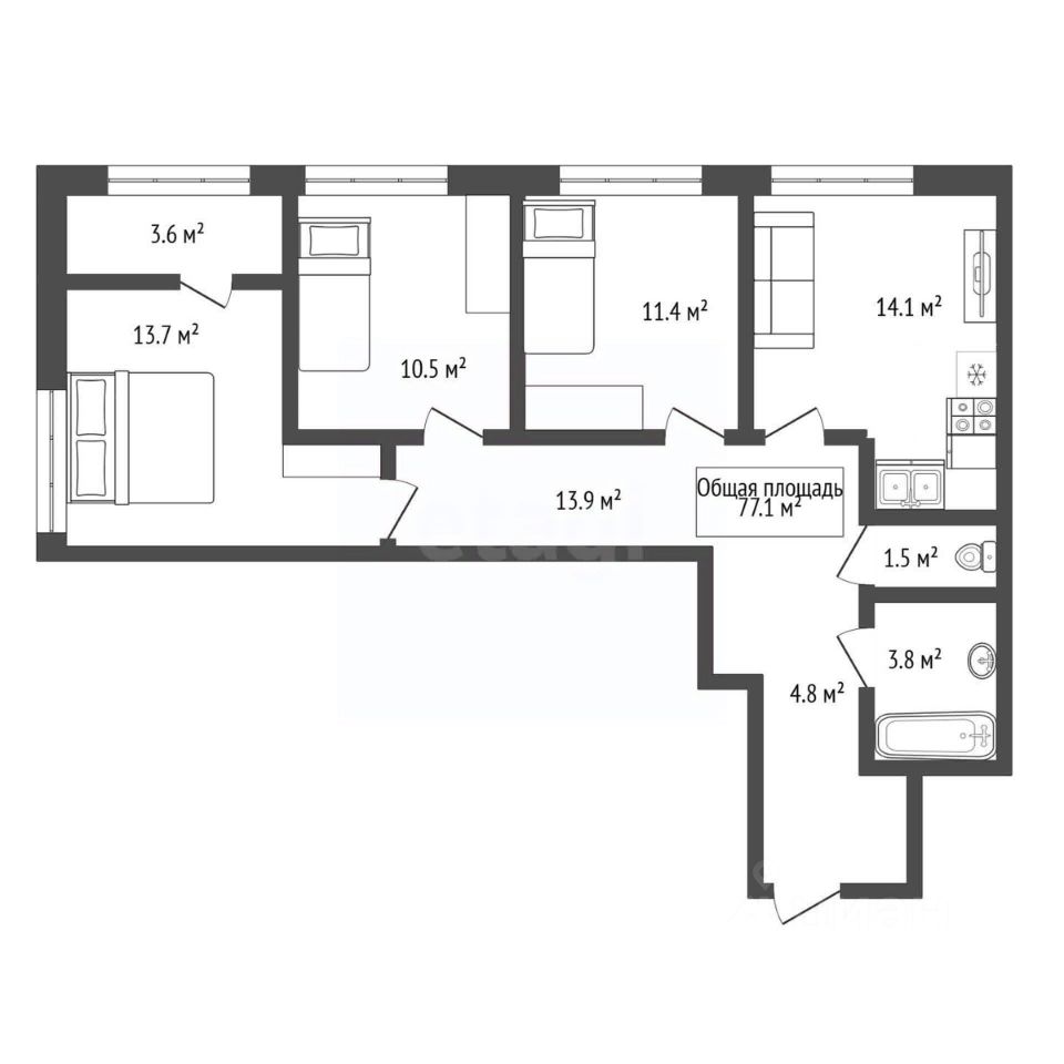 Продается квартира 77.3 м² с авторской планировкой.