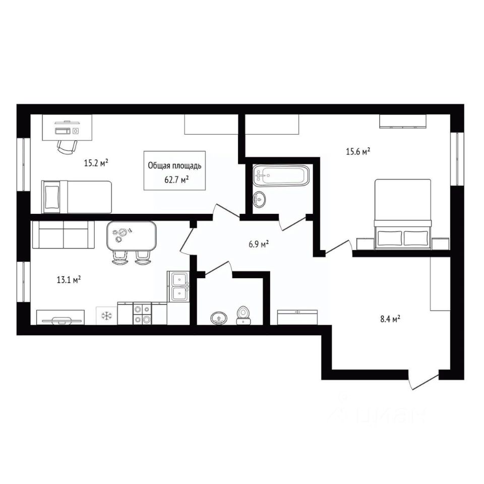 Продается квартира 62,7 м² с авторской планировкой.