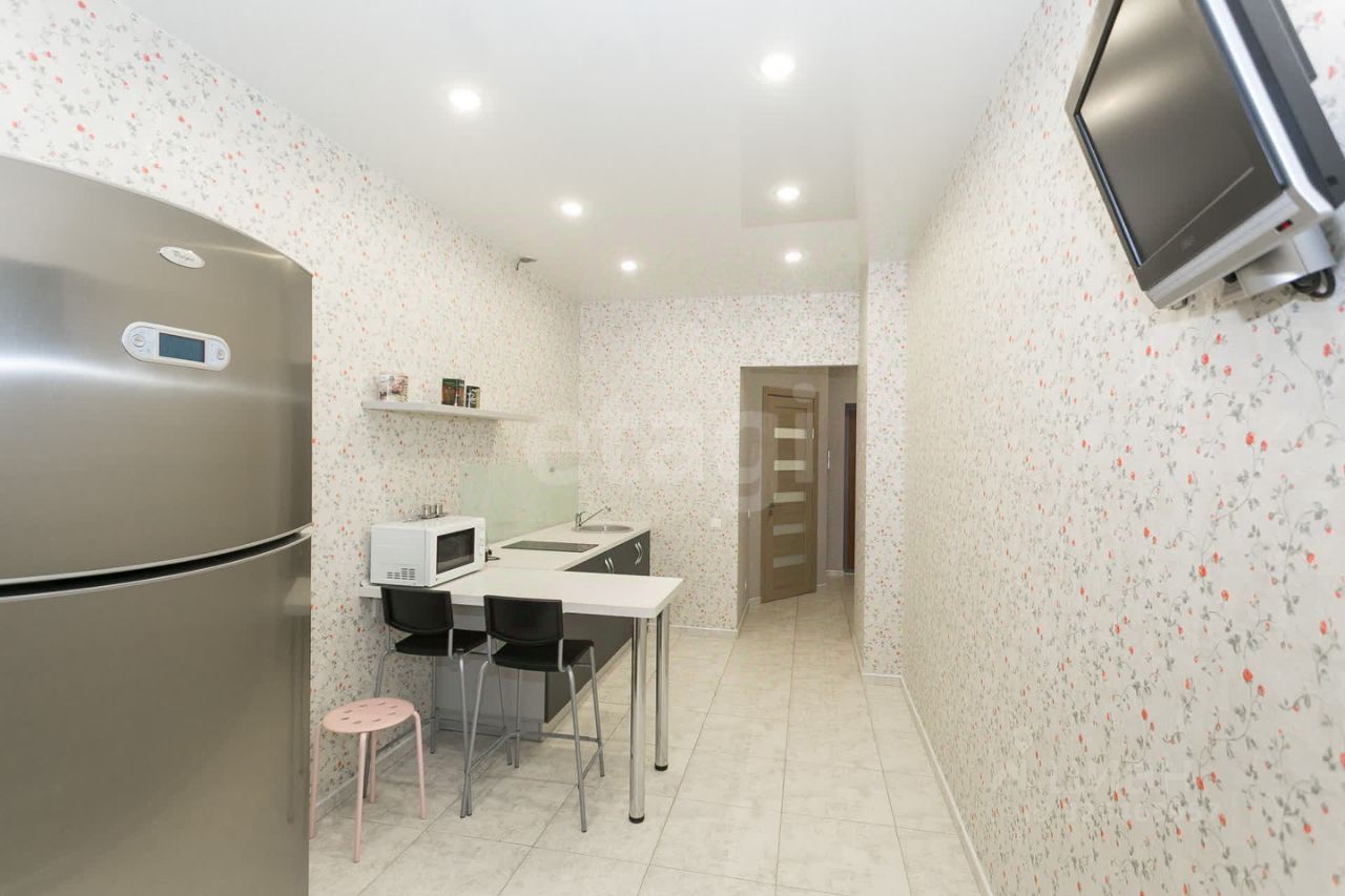 Квартира с качественным евроремонтом, полностью меблирована. В кухне и комнате есть всё необходимое для комфортного проживания. На кухне установлены холодильник и телевизор, свч, чайник, варочная плита. В ванной комнате душевая кабина и стиральная машина.
