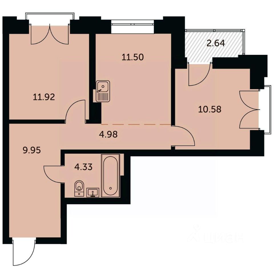 Общая площадь54,58 м2