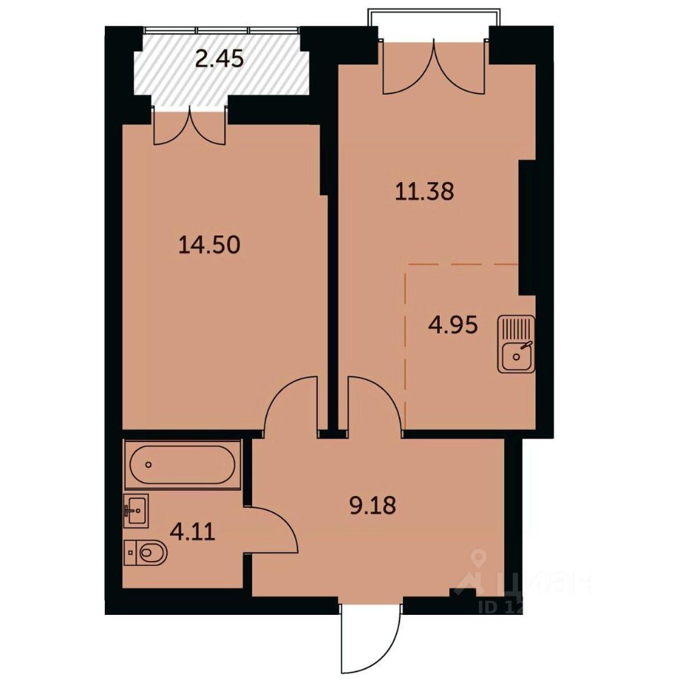 Общая площадь45,4 м2