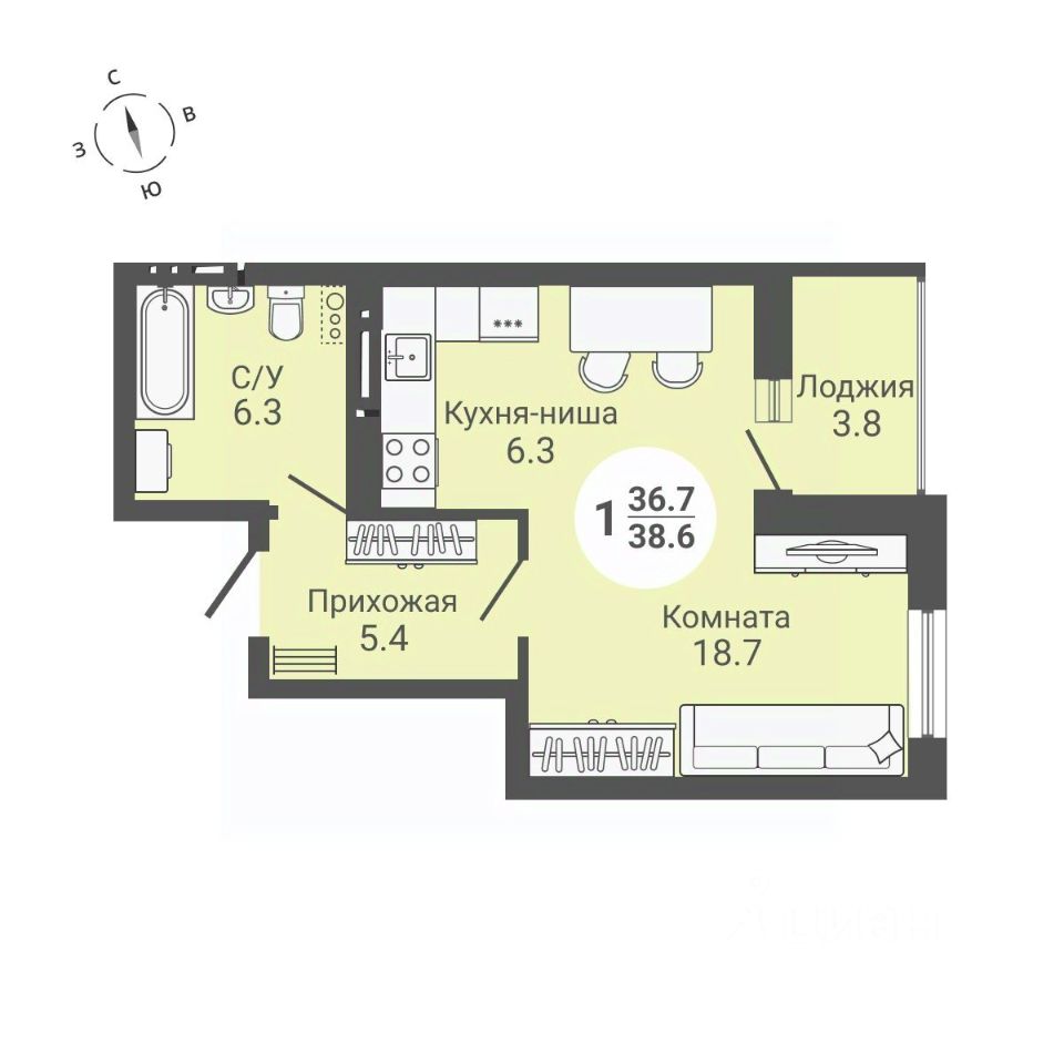 Общая площадь38,6 м2