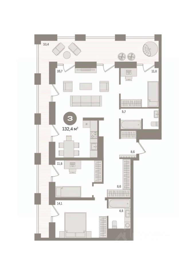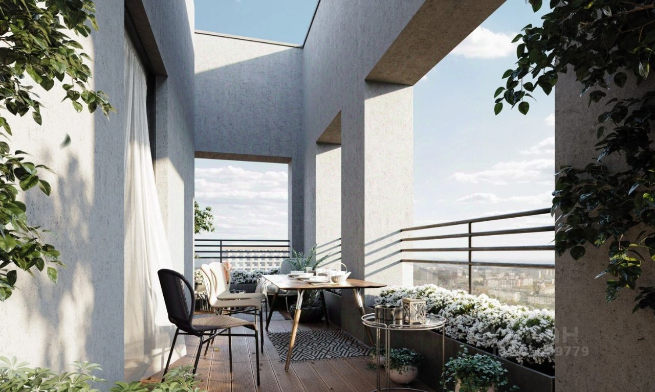 Квартира с кухней-гостиной и двумя спальнями в квартале ''Мылзавод''. Особенности планировки: предчистовая отделка, терраса на крыше. квартиры в нашей базе: МЛ-ГП4.2-9-9.28.5.