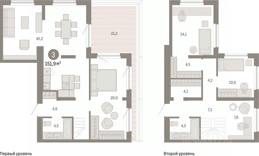 3-комн. квартира от застройщика с предчистовой отделкой в Микрорайон ''Европейский Берег'' на 15 этаже. Общая площадь: 151.93 кв.м. Высота потолков 2.72 м.