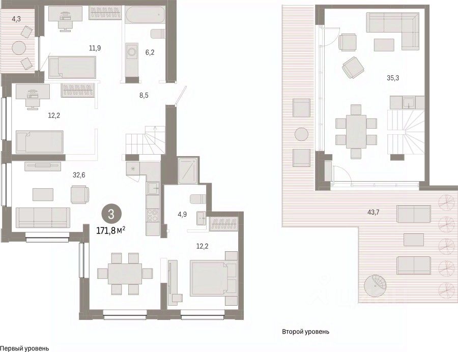 Продается 3-комн. квартира от застройщика с предчистовой отделкой в Микрорайон ''Европейский Берег'' на 14 этаже. Общая площадь: 171.8 кв.м. Высота потолков 2.7 м.