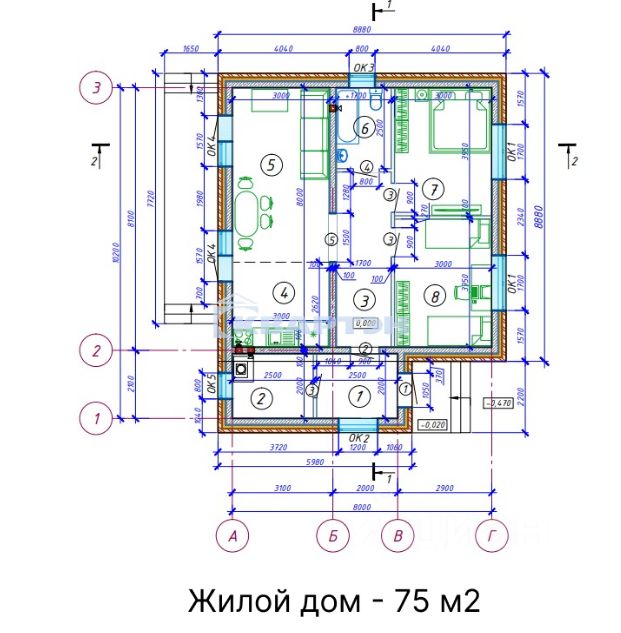 Общая площадь75 м2