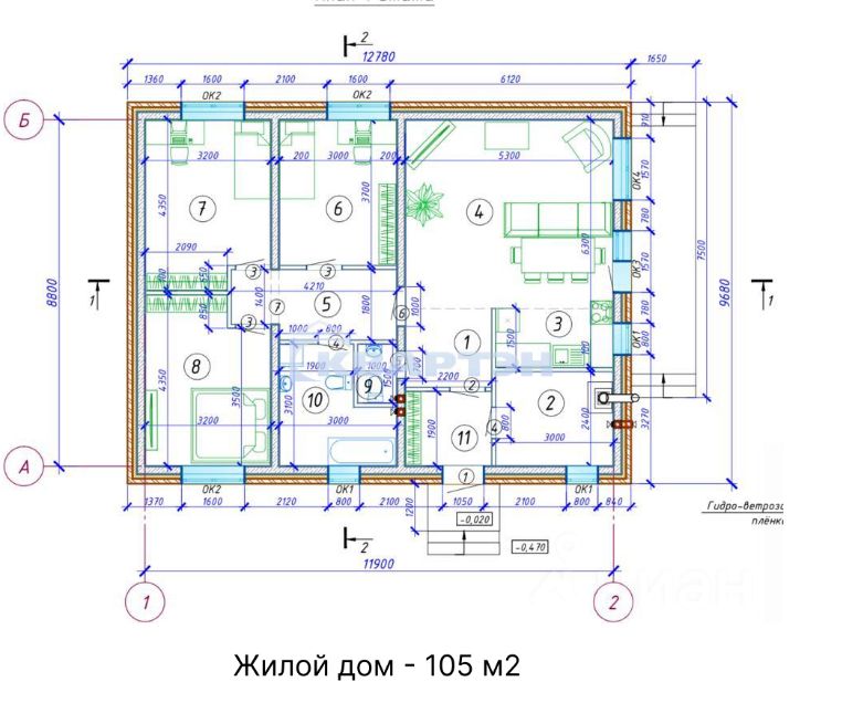 Общая площадь105 м2