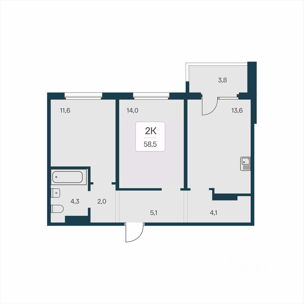 Продаётся 2-комнатная квартира в строящемся доме (Дом 12, блок-секция 1), срок сдачи: III-кв. 2027, общей площадью 58.5 кв.м., на 6 этаже. Новый жилой комплекс ''Акация на Игарской'' от застройщика ООО СЗ Аквамарин (Акация) расположен в Калининском районе г. Новосибирск в границах улиц Игарская и Фадеева.
