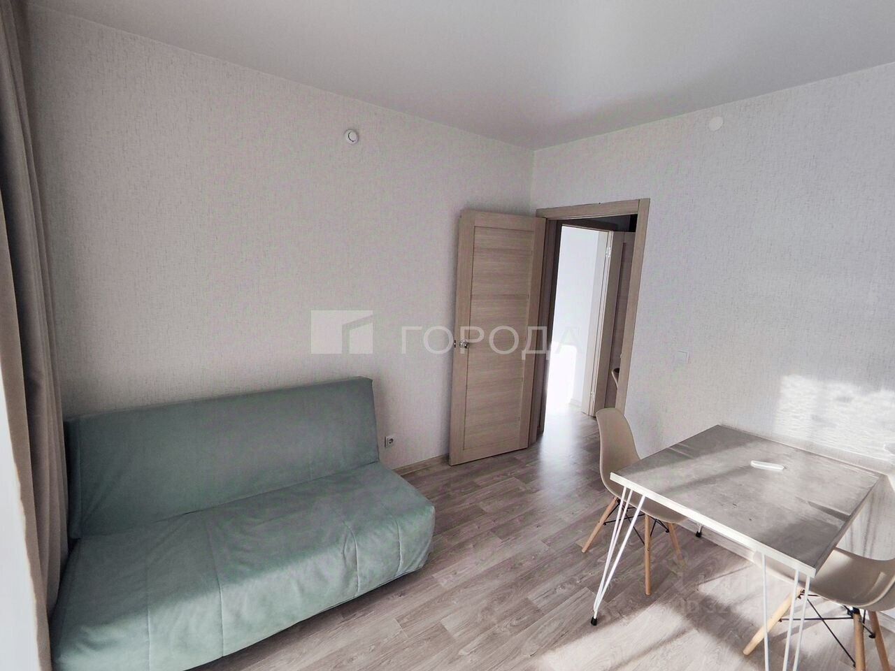 Общая площадь квартиры составляет 38,1 кв. м, жилая — 14,7 кв. м, площадь кухни — 12,6 кв. м. В квартире выполнен евроремонт, комнаты изолированы, окна выходят на улицу.