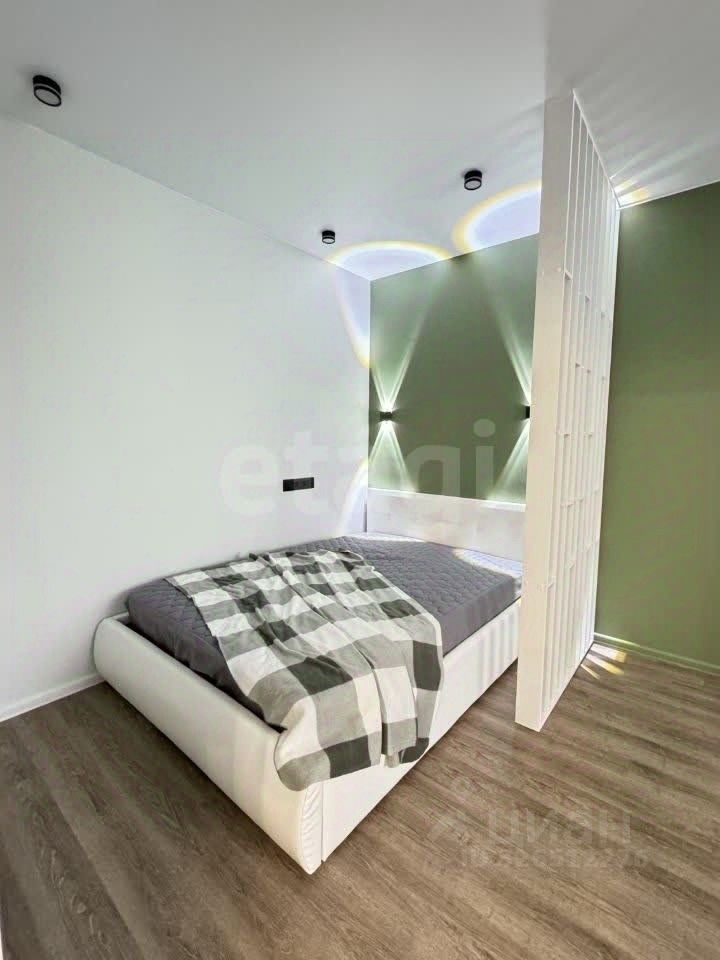 В комнате произведено зонирование. Есть спальное место и место для гостей, работы или просто приятного вечернего просмотра телевизора. Вся мебель новая.