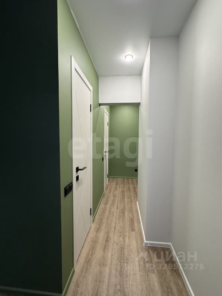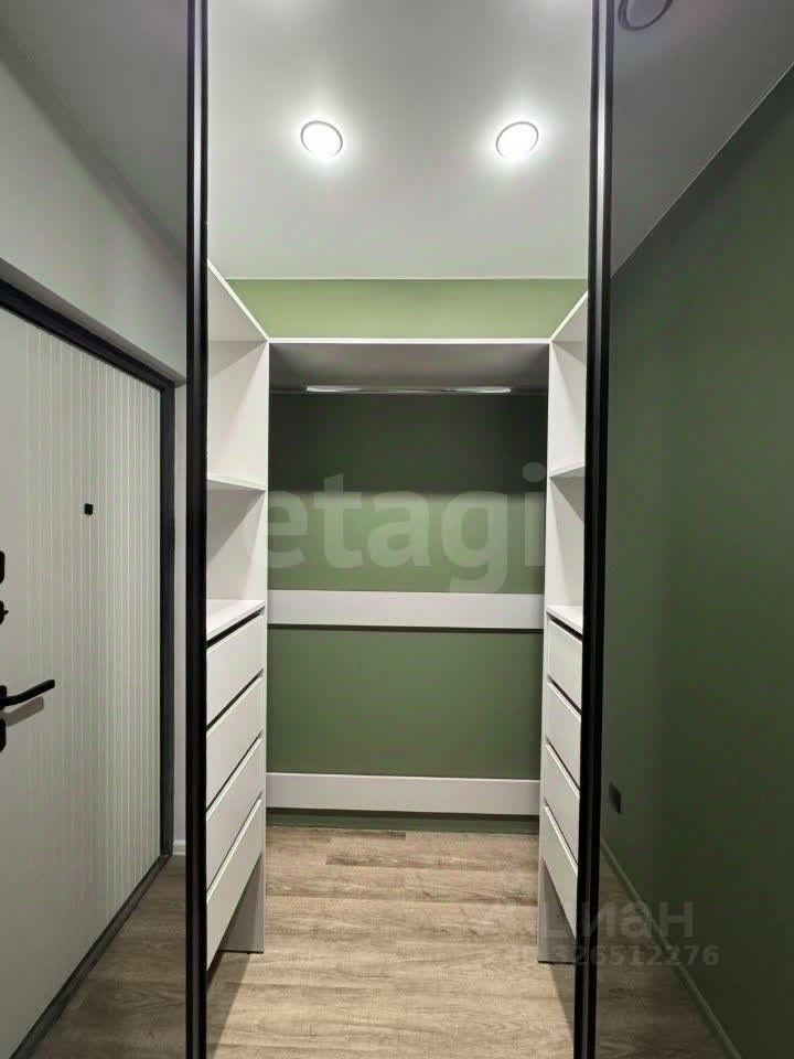 На входе в коридоре встроенная гардеробная, вместительных размеров с зеркальными дверьми.
