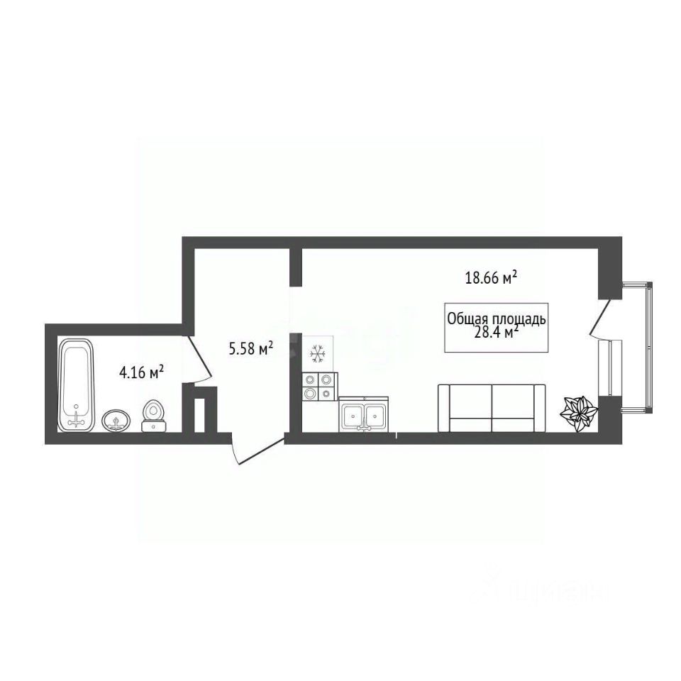 Студия расположена на комфортном 5-м этаже, Общая площадь — 28,4 мкв. Надежная входная дверь.