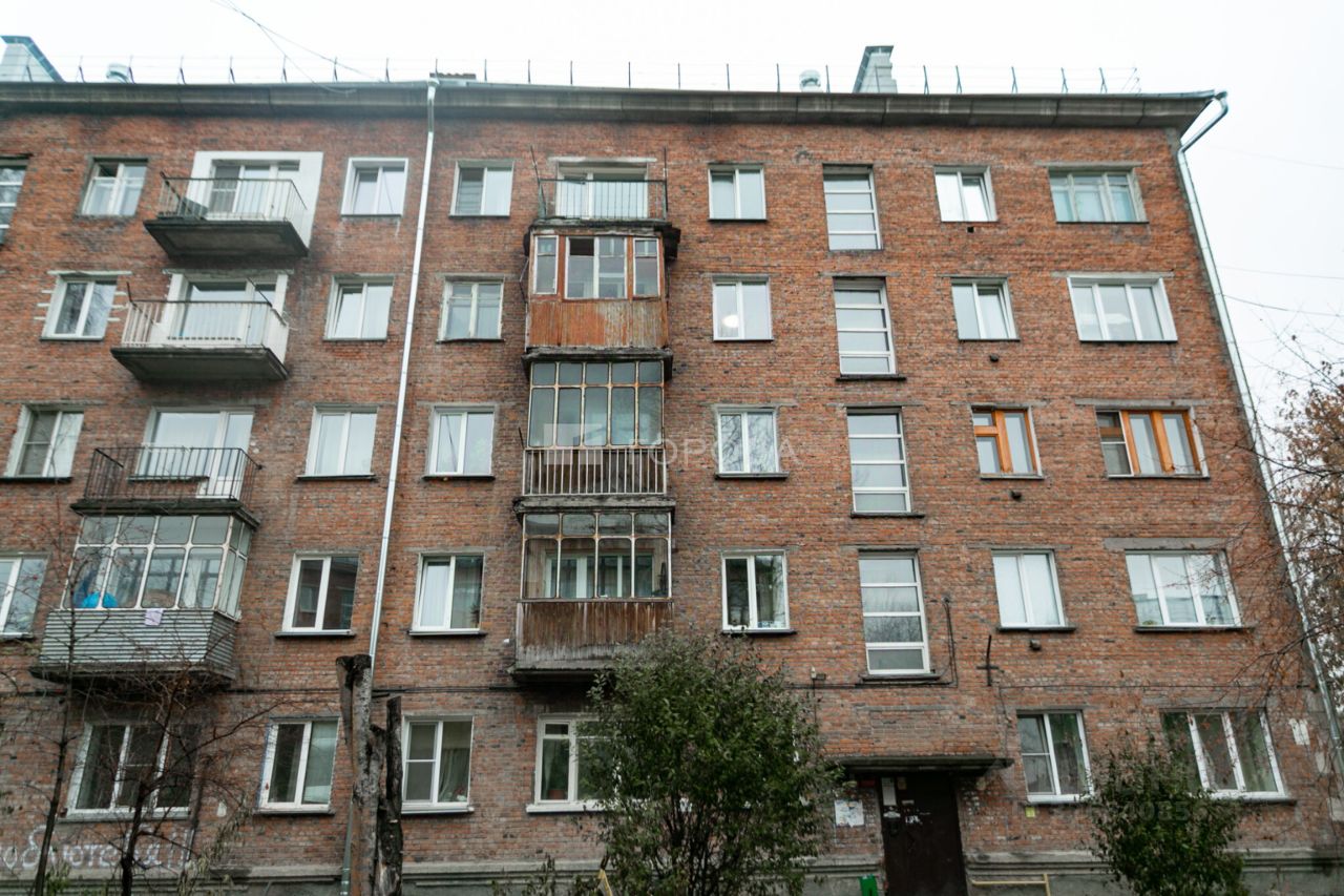 Квартира расположена на первом этаже пятиэтажного кирпичного дома 1959 года постройки. Материал перекрытий — железобетонные плиты. Отопление центральное, парковка наземная. Окна выходят на улицу.