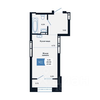 Общая площадь28,45 м2