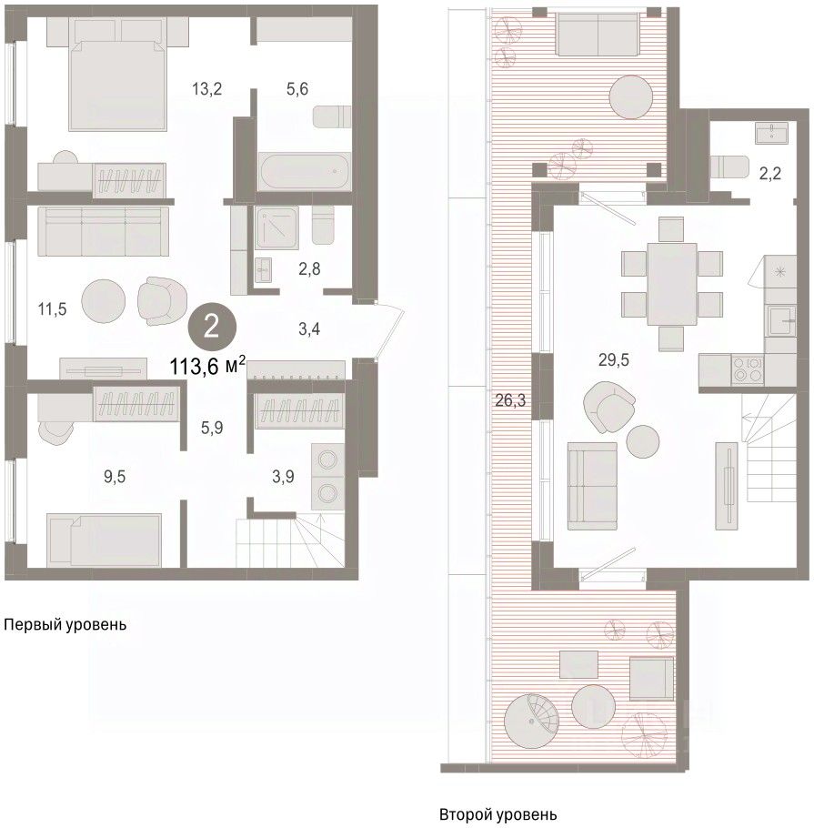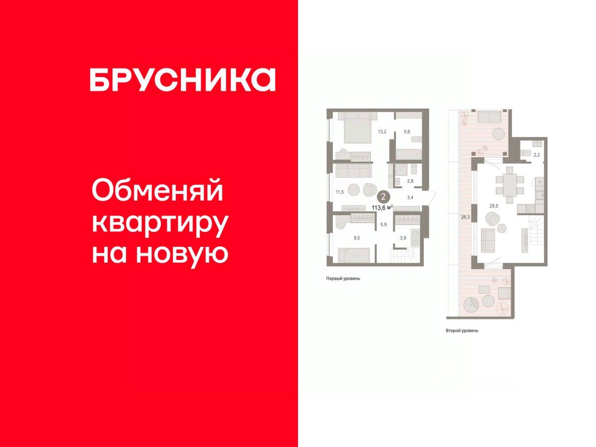 Двухуровневая квартира с кухней-гостиной и тремя спальнями в жилом районе ''Пшеница''. Особенности планировки: двухуровневая, летняя кухня на крыше, панорамное остекление, свободная планировка, терраса на крыше. квартиры в нашей базе: ПШ-ГП4-3-3.8.2.