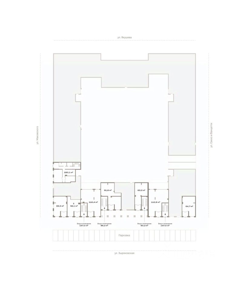 Помещение свободного назначения на 1 этаже, общая площадь 87.1 кв.м., без отделки. Стоимость помещения 15,850,000 руб., цена за кв.м 181,974 руб.