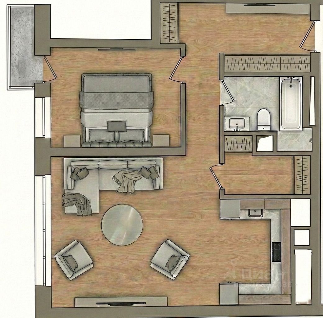 Здесь по-домашнему уютно и очень тихо — городской шум сюда не долетает. Просторная кухня-гостиная (35 м²) станет сердцем дома: тут много света и места для всей семьи. Ремонт делали для себя, на материалах не экономили. Всё продумано: есть гардеробная и постирочная, чтобы в комнатах всегда был порядок и простор. Мебель мягкая, удобная, техника надежная — всё остается вам.