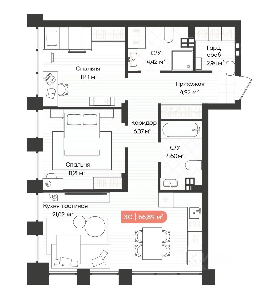Общая площадь67,16 м2