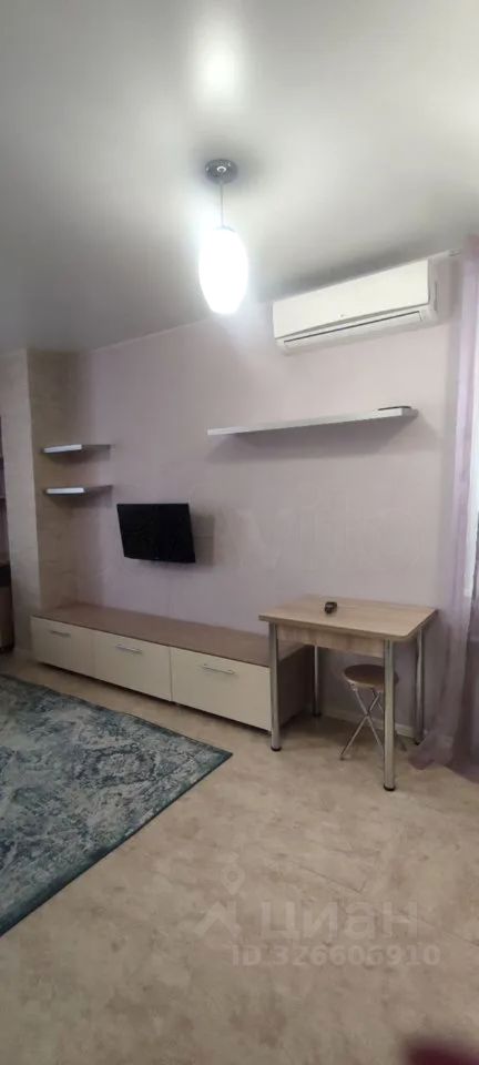 Светлая однокомнатная студия с аккуратной планировкой и спокойным интерьером в нейтральных оттенках. Пространство организовано функционально и визуально разделено на зоны, что создаёт ощущение порядка и комфорта. За счёт светлой отделки и освещения квартира выглядит просторной и ухоженной.