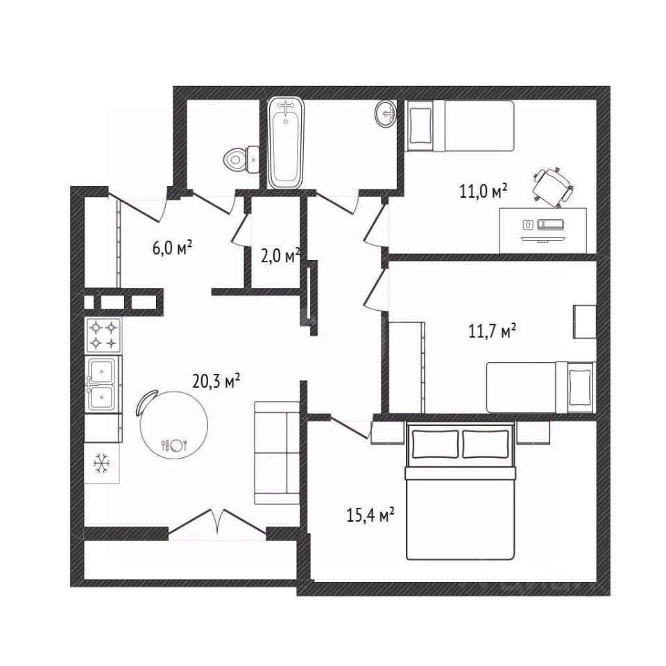Основные характеристики: общая площадь — 80,2 кв. м жилая — 40 кв. м кухня — 20,3 кв.