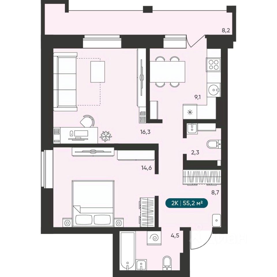 Общая площадь55,2 м2