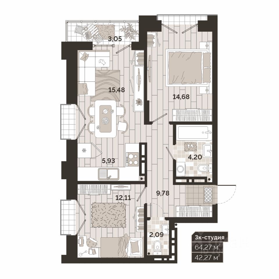 продам 3-к, Гоголя, 204/1 стр.11 640 000 ₽