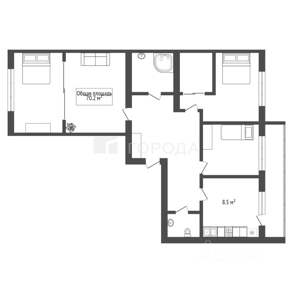КВАРТИРА: - качественный ремонт - несколько систем хранения (шкафы, гардеробные) - изолированная кухня - три отдельных комнаты - просторный коридор - два санузла - лоджия (выход из кухни) - окна выходят на разные стороны дома
