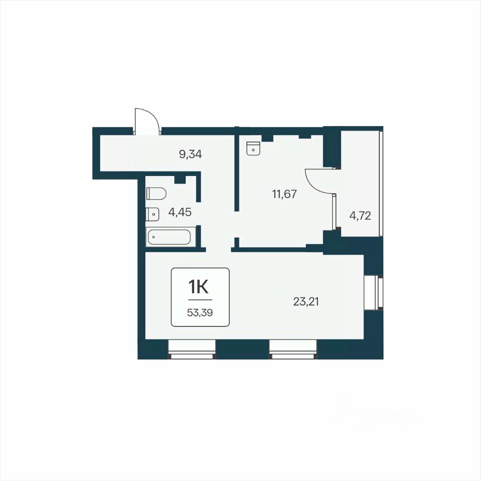 Общая площадь52,6 м2