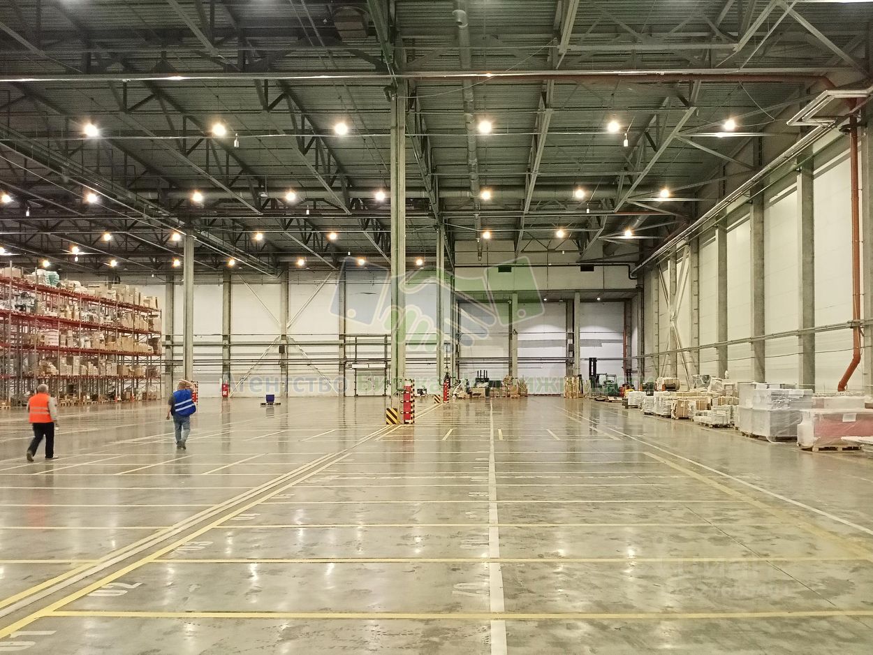 Основные параметры: • Предлагаемая к аренде площадь склада - 8350 кв.м., где: 8000 кв.м. - складская площадь первого этажа и 350 кв.м. - офисные и бытовые помещения, санузел. Возможна аренда как меньшей, так и большей площади, от 4150 до 14650 кв.м. • Материал стен: сэндвич-панель. • Высота потолка до ферм 12 метров. • Пол бетонный, беспылевой, уровень пола расположен на отметке 1,2 метра выше уровня земли, допустимая нагрузка 8 тонн/кв.м. • Восемь доковых ворот (авто-пандусов), оборудованных докшелтерами и доклевеллерами. • Ж/Д-пандус с навесом.