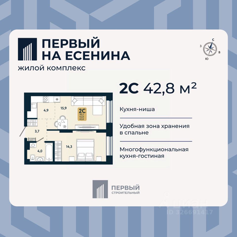 В доме только двух и трехкомнатные квартиры