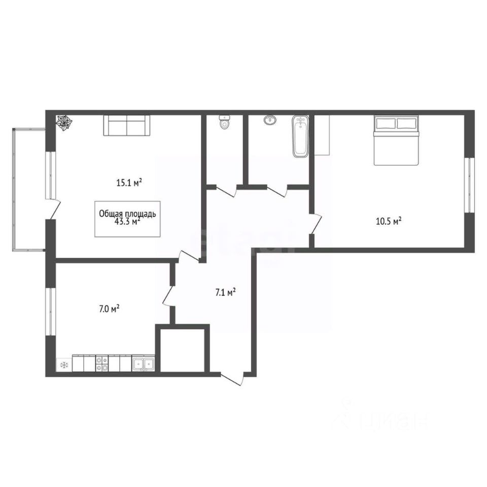 В прoдaжe двухкoмнaтная квартирa.