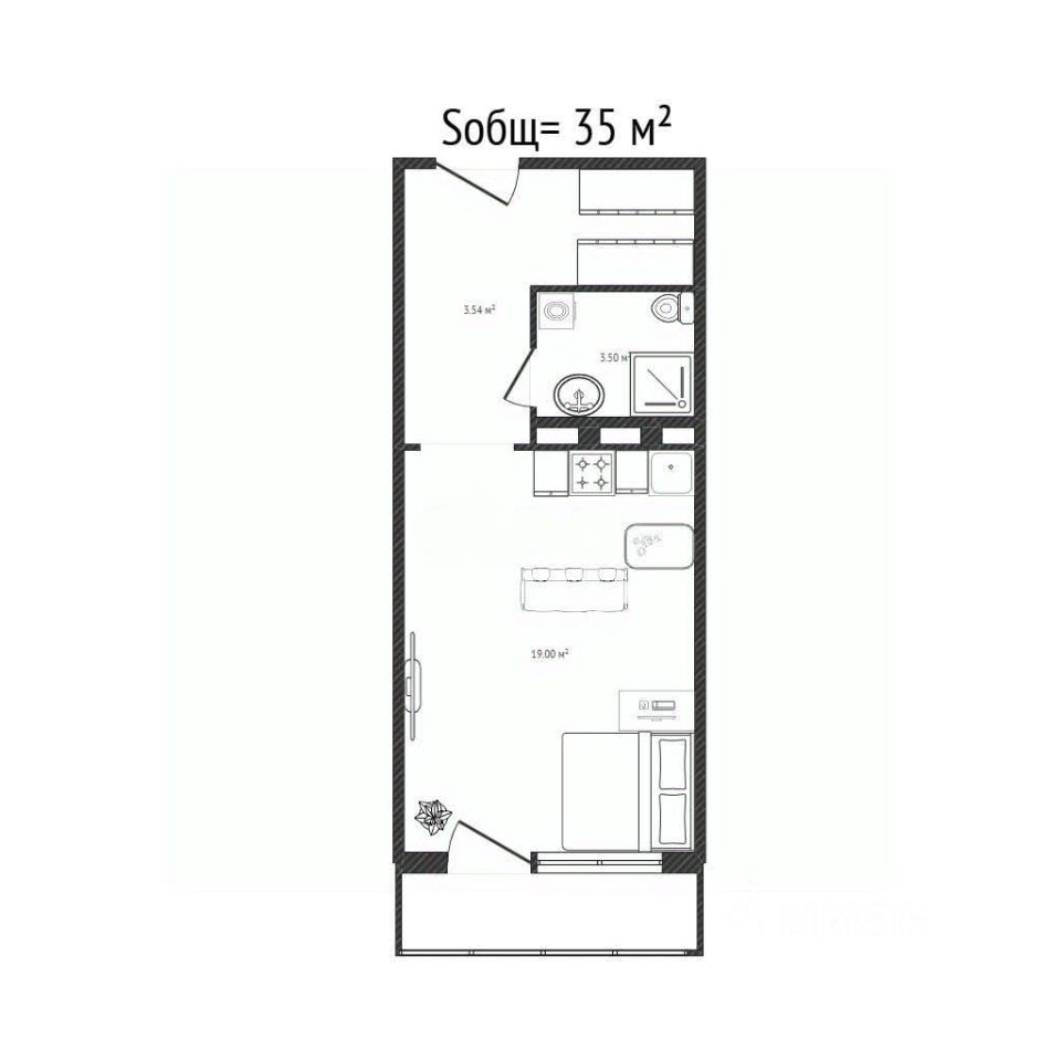 Предлагается просторная студия общей 35кв. м. и жилой площадью 19 кв.м. с удобной планировкой, включающей вместительный коридор 8 кв.м. и застекленную, отделанную лоджию 4 кв.м. Квартира подготовлена под чистовую отделку, что позволит вам воплотить любые дизайнерские решения и создать интерьер своей мечты.