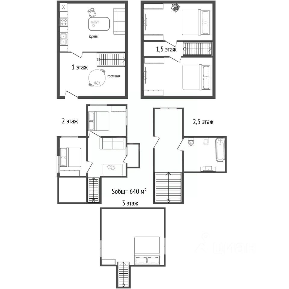 Общая площадь640 м2
