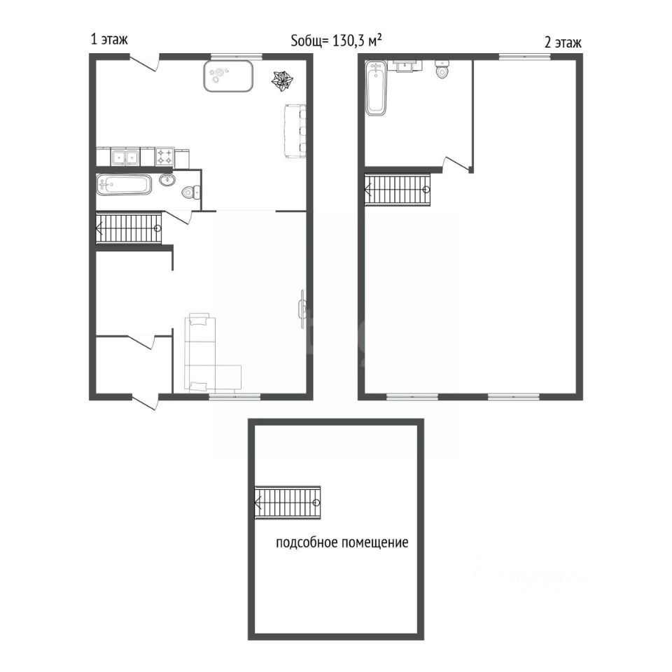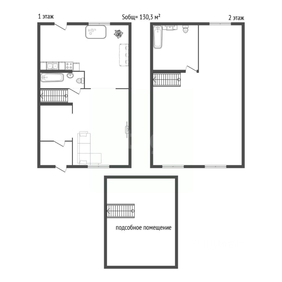 Общая площадь 130,3 кв.м. В помещениях выполнен частичный ремонт, что даёт вам возможность завершить отделку под свой вкус и бюджет, не начиная с нуля.