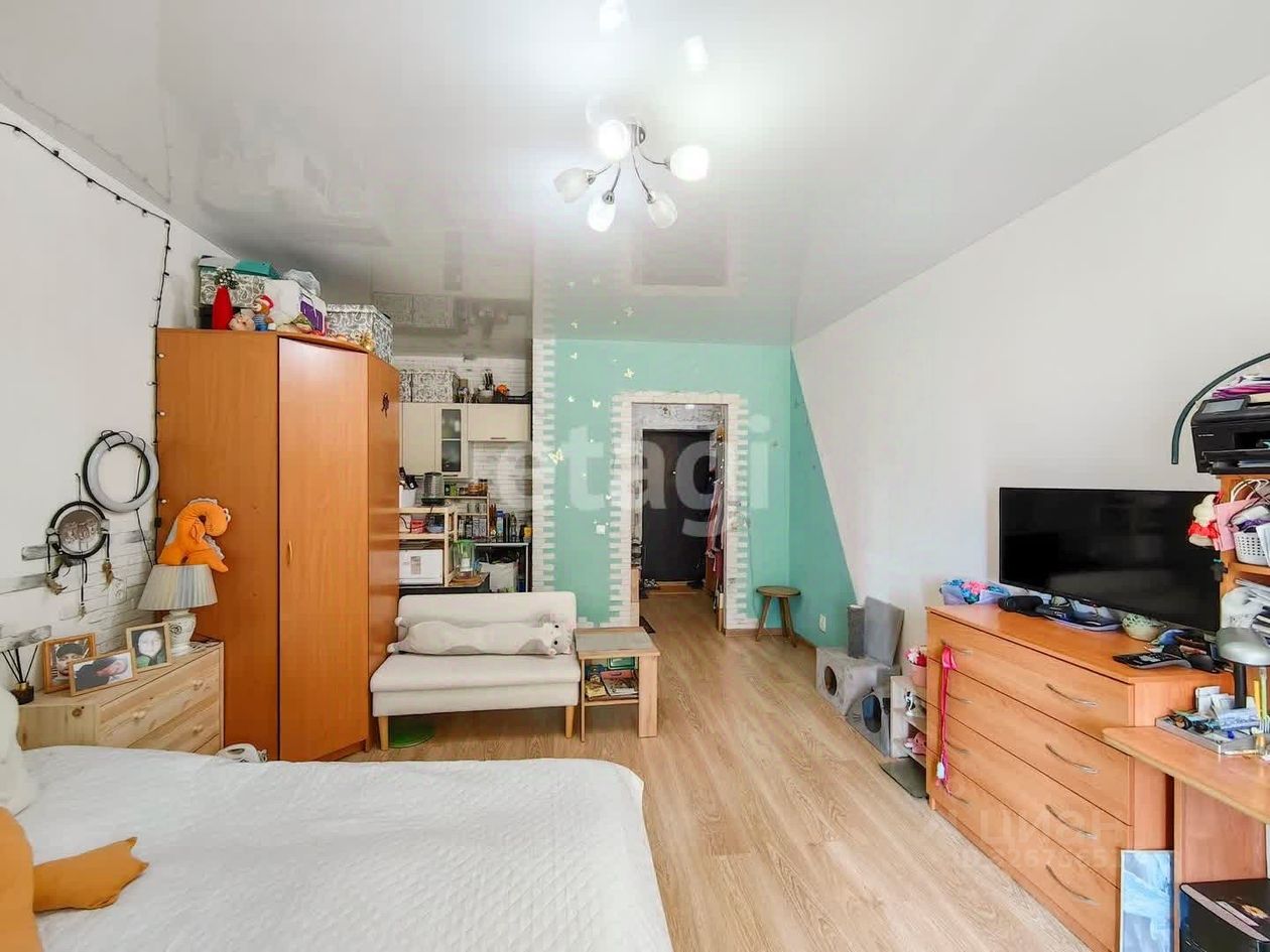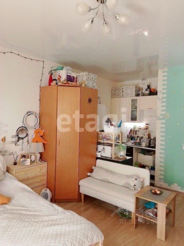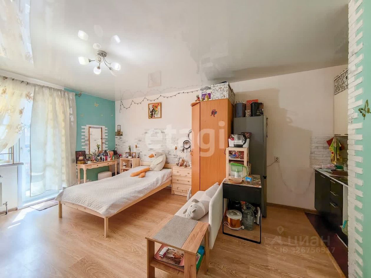 Просторная однокомнатная студия площадью 28,9м² расположена на 6 этаже 16-этажного монолитно-кирпичного дома 2016 года постройки. Окна выходят во двор с детской площадкой. Застекленная лоджия с панорамным остеклением увеличивает полезное пространство и наполняет квартиру естественным светом в первой половине дня. Планировка рациональная: компактная кухонная зона плавно переходит в гостиную, что создает ощущение простора. На полу уложен ламинат, в санузле — керамическая плитка, установлены натяжные потолки с точечным освещением. Система отопления включает горизонтальную разводку с индивидуальными счетчиками и теплые полы, что позволяет регулировать температуру и экономить на коммунальных платежах.