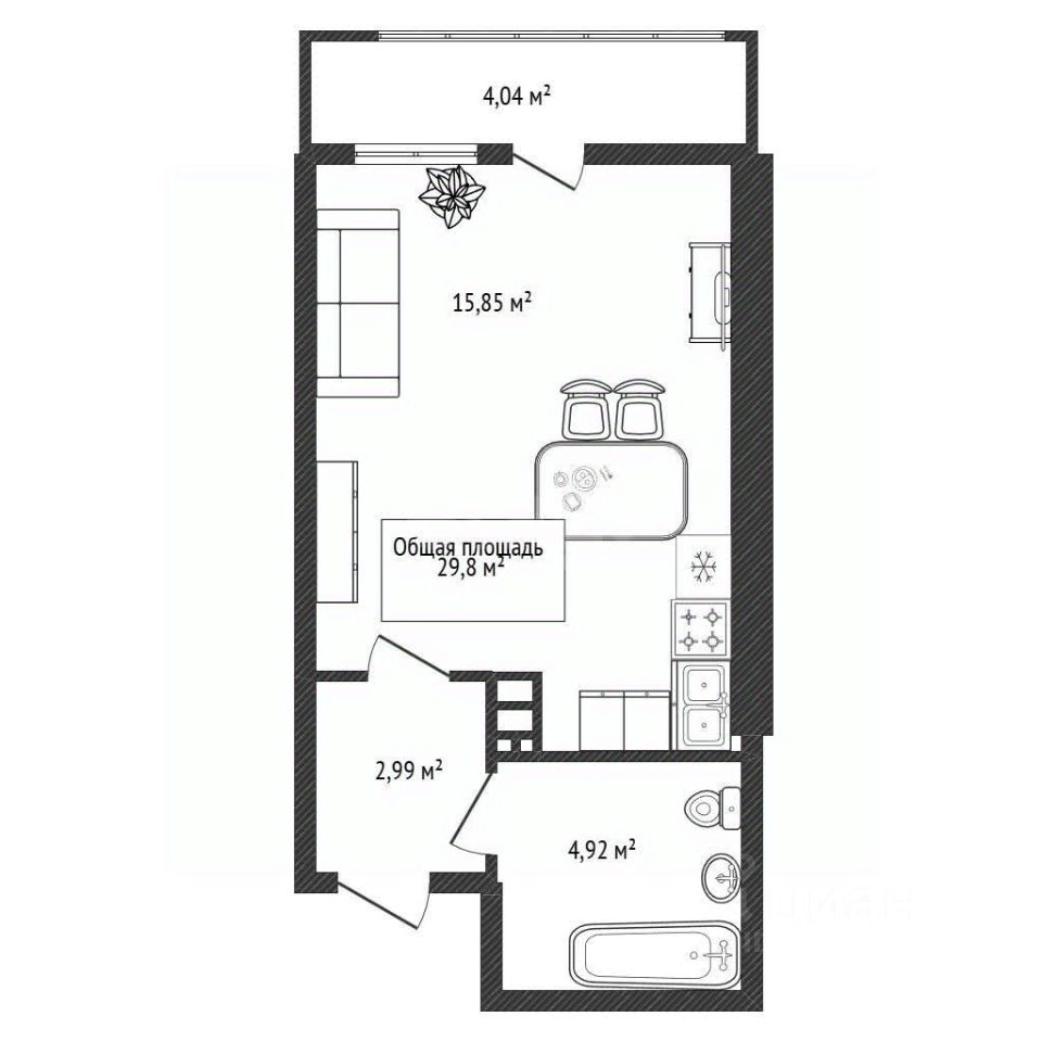 Просторная однокомнатная студия площадью 28,9м² расположена на 6 этаже 16-этажного монолитно-кирпичного дома 2016 года постройки. Окна выходят во двор с детской площадкой. Застекленная лоджия с панорамным остеклением увеличивает полезное пространство и наполняет квартиру естественным светом в первой половине дня. Планировка рациональная: компактная кухонная зона плавно переходит в гостиную, что создает ощущение простора. На полу уложен ламинат, в санузле — керамическая плитка, установлены натяжные потолки с точечным освещением. Система отопления включает горизонтальную разводку с индивидуальными счетчиками и теплые полы, что позволяет регулировать температуру и экономить на коммунальных платежах. Двор благоустроен: детская и спортивная площадки, зона отдыха с фонтаном, озелененная территория. Закрытая придомовая территория с контролируемым доступом обеспечивает безопасность и ограничивает проезд постороннего транспорта. В шаговой доступности (3-5 минут пешком) расположены современная школа с углубленным изучением языков, детские сады, супермаркеты и аптеки. В 7 минутах ходьбы — остановка общественного транспорта с маршрутами до метро (10 минут на автобусе). Рядом развитая инфраструктура: кафе, фитнес-клуб, отделения банков. Объект подходит как для комфортного проживания, так и для инвестиций — район пользуется стабильным спросом у арендаторов. 1 взрослый собственник.