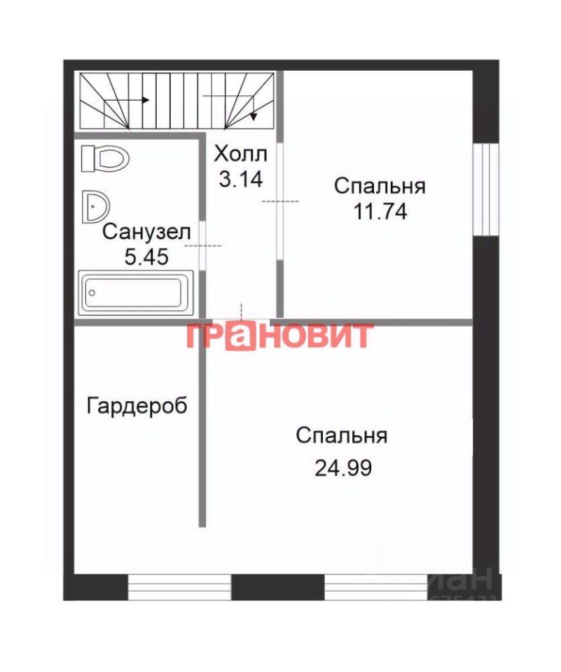 Ключевые параметры дома: 1 этаж: - прихожая с вместительным шкафом, - гостиная с камином, - просторная кухонная зона со встроенной бытовой техникой, - санузел, 2 этаж: - спальня с гардеробной, - общая комната, - просторная ванная комната.