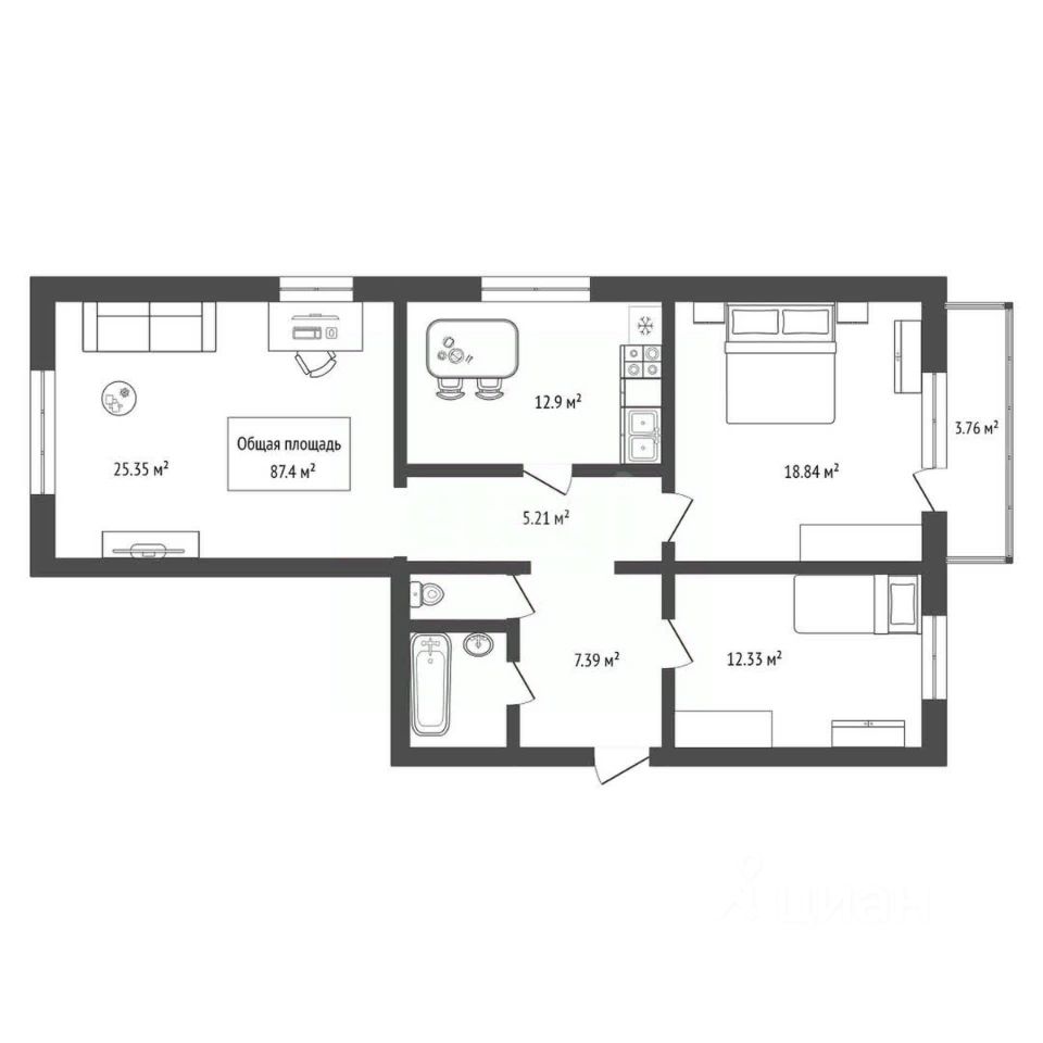 Просторная трехкомнатная квартира площадью 87.4 кв. м расположена на третьем этаже современного жилого комплекса в перспективном районе ЖМ Плющихинский. Квартира отличается продуманной планировкой с тремя изолированными комнатами, что обеспечивает комфортное проживание для семьи или возможность организации личного пространства. Балкон позволяет наслаждаться свежим воздухом, при этом окна выходят во двор, гарантируя тишину и отсутствие пыли от проезжей части.