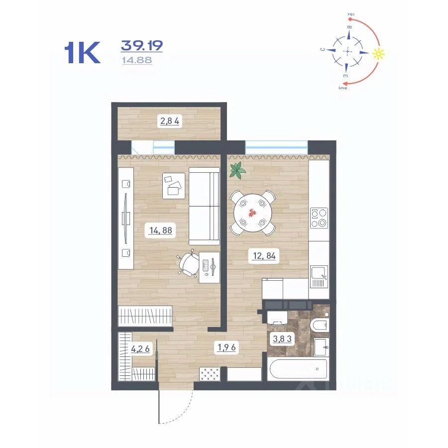 Общая площадь39,19 м2