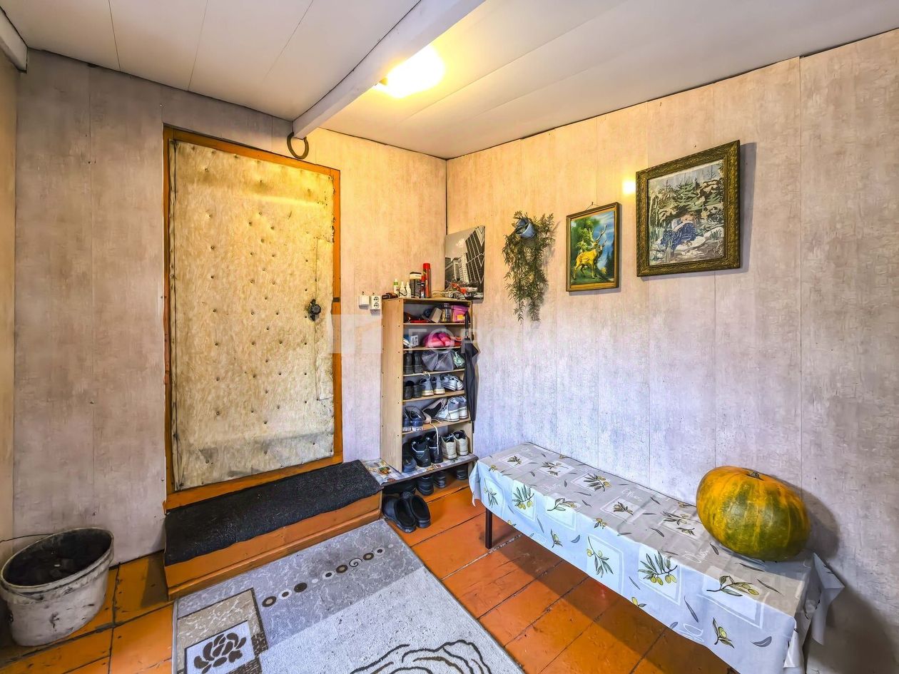 Помимо дома на участке находятся баня, туалет и сарай, где можно хранить садовый инвентарь. В огороде растёт свой урожай. В доме очень вместительный погреб с целую комнату. Отопление печное. Дом в идеальном состоянии, тёплый и ухоженный.